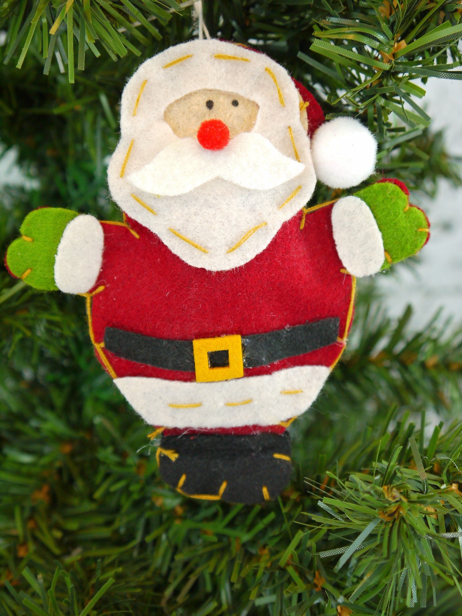 Add classic Christmas charm to your décor with this Handmade Plush Santa Ornament. Featuring Santa with his hands up in joyful holiday spirit, a soft felt texture, and a traditional black belt detail, this festive ornament is full of handcrafted character. Its bright colors and playful design make it a delightful addition to any Christmas tree, wreath, or gift wrap accent.