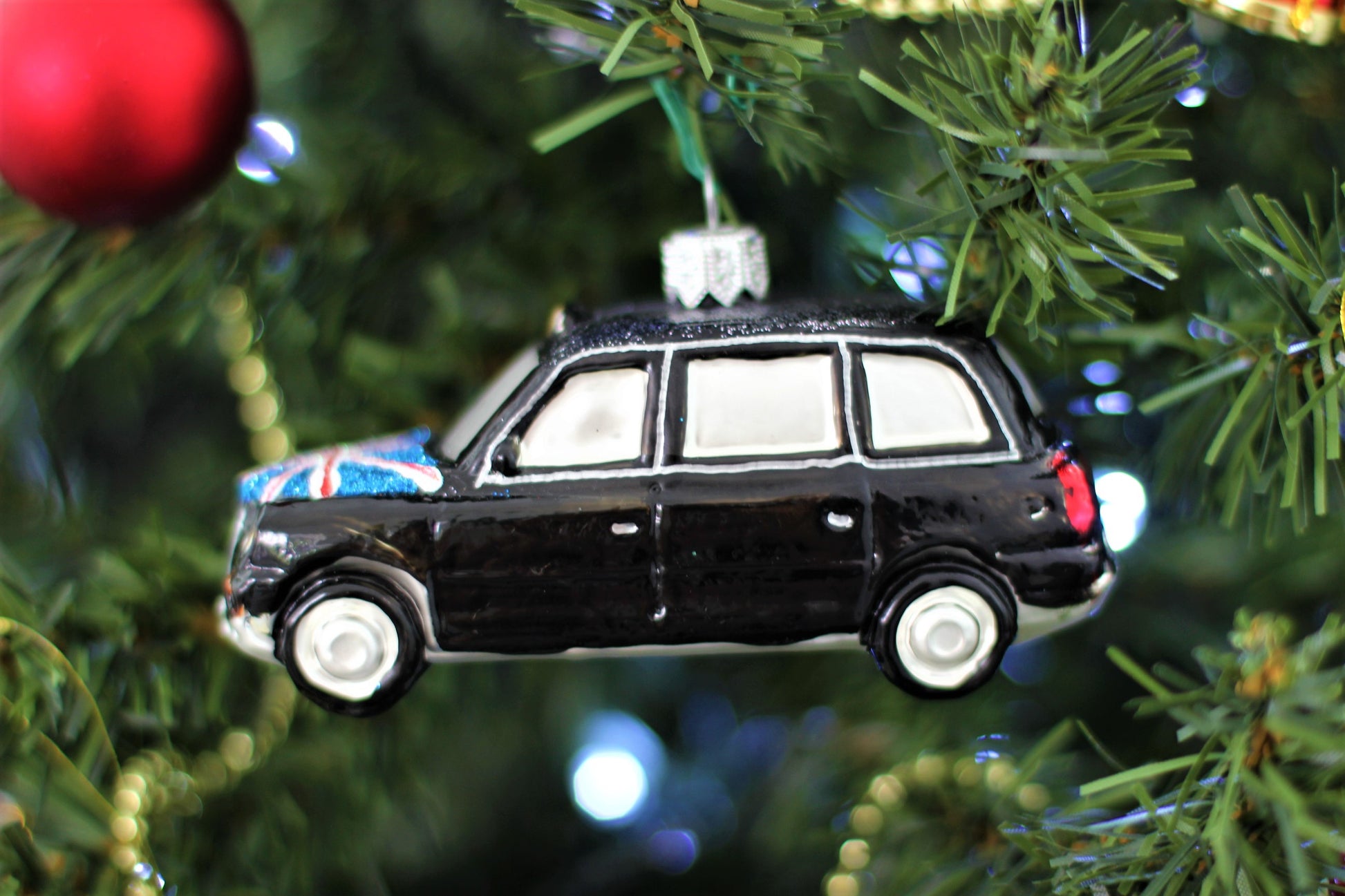 Bring a charming touch of classic British character to your holiday décor with this beautifully crafted London Taxi ornament. Designed with careful attention to detail, it features the iconic black cab shape complete with painted windows, wheels, and a glittering Union Jack across the bonnet, giving it an authentic and nostalgic look. The hand-painted finish adds depth and personality, making it a standout piece for any Christmas display.