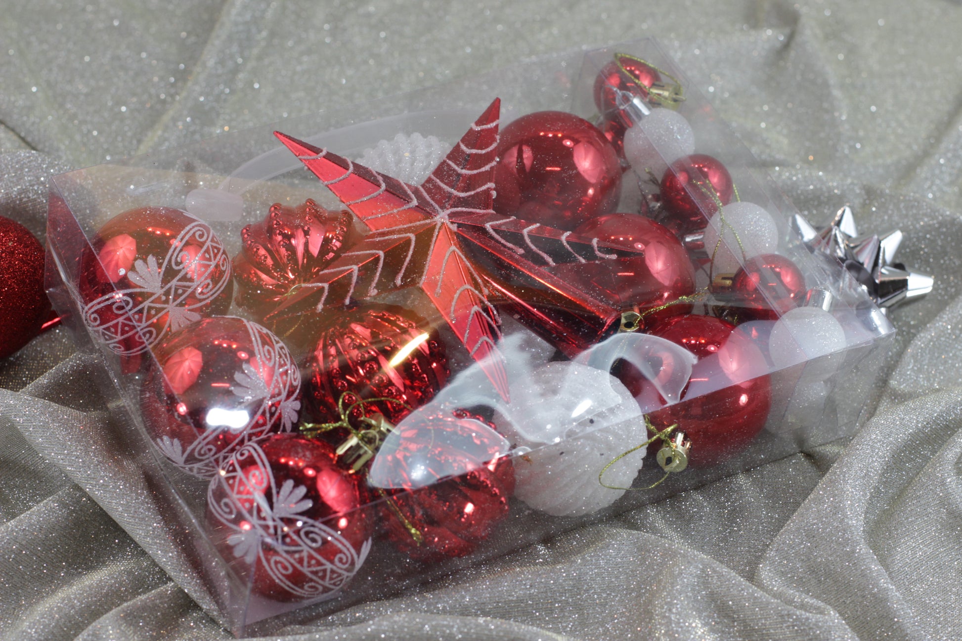 Assorted Set of 25 Red & White Christmas Tree Decorations