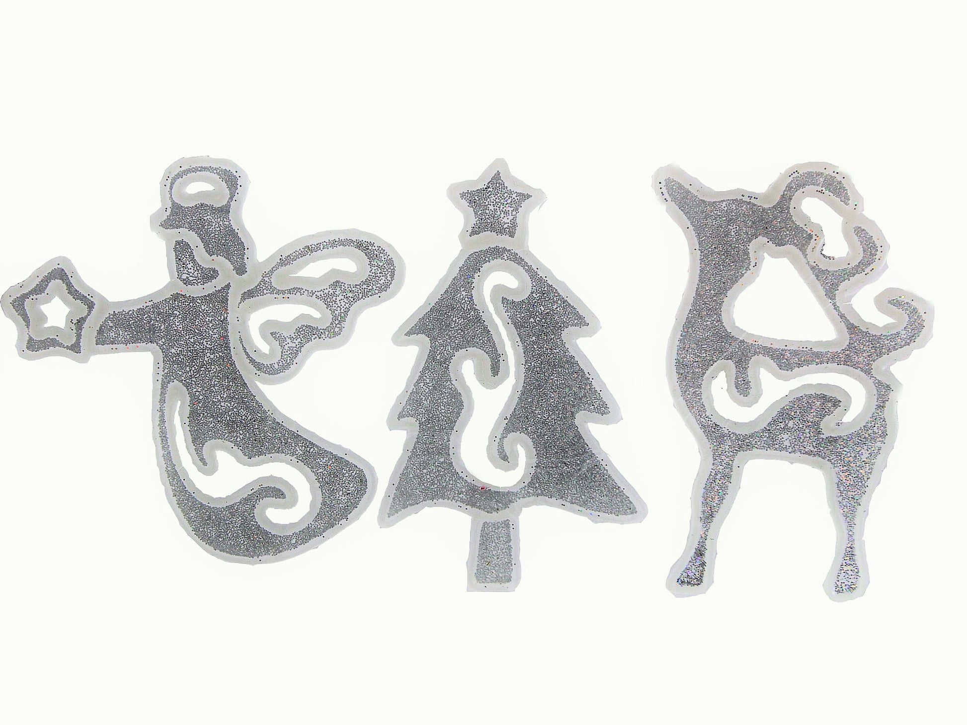 Add a sparkling festive touch to your windows and mirrors with this set of 3 double-sided silver glitter Christmas stickers. Featuring elegant angel, reindeer, and Christmas tree designs, these shimmering decorations catch the light beautifully from both sides — perfect for creating a magical holiday atmosphere.