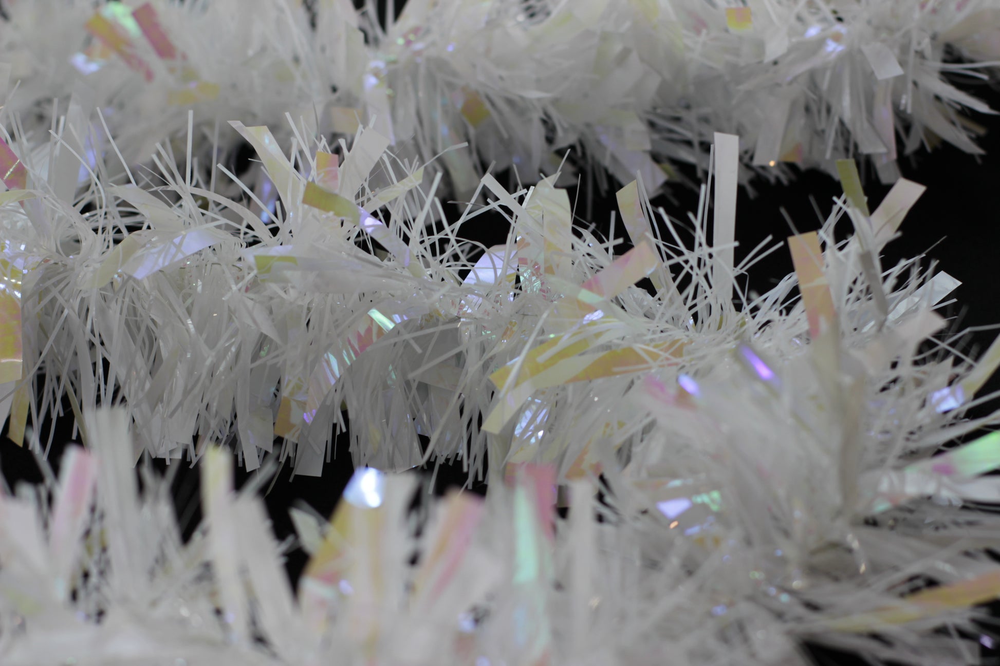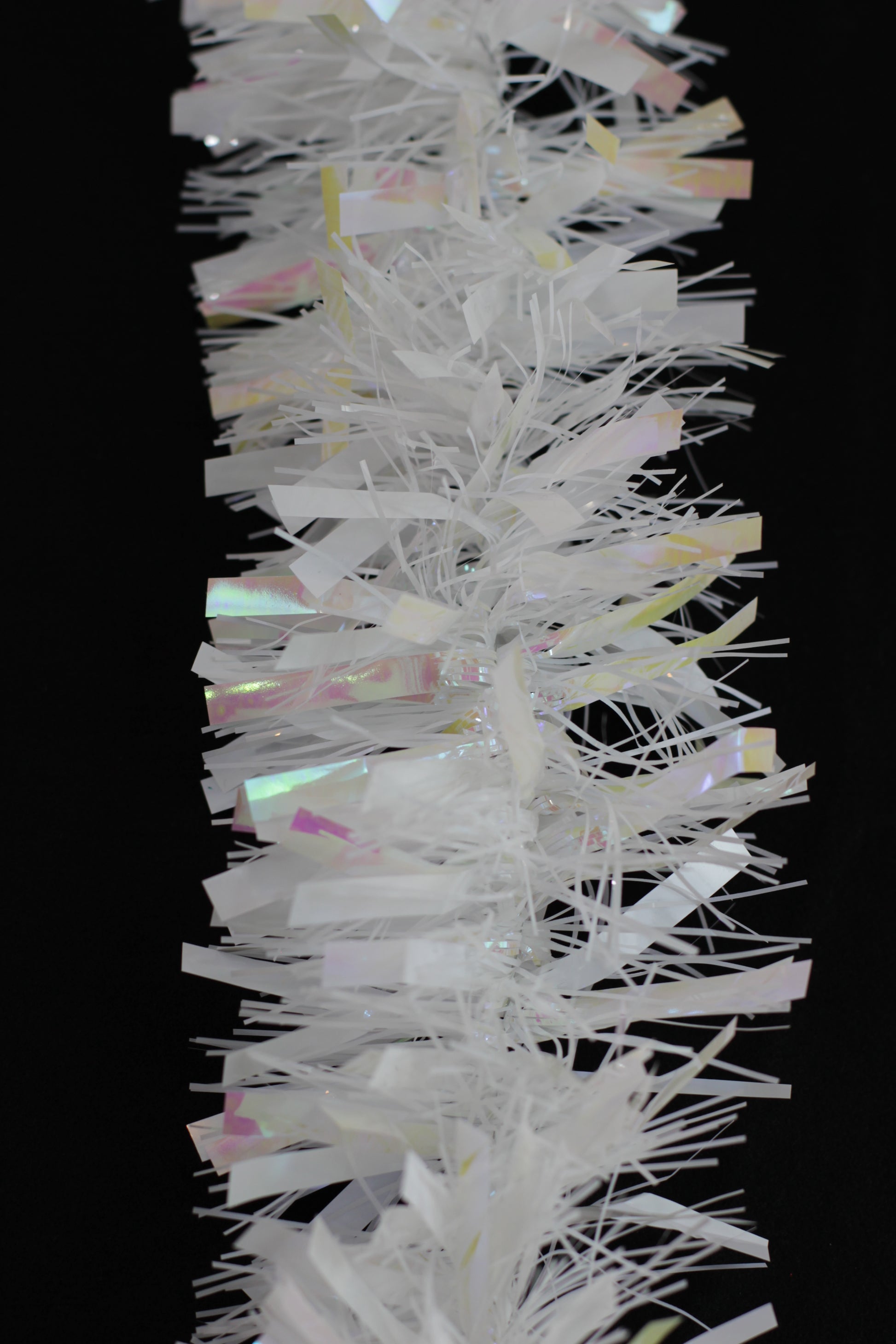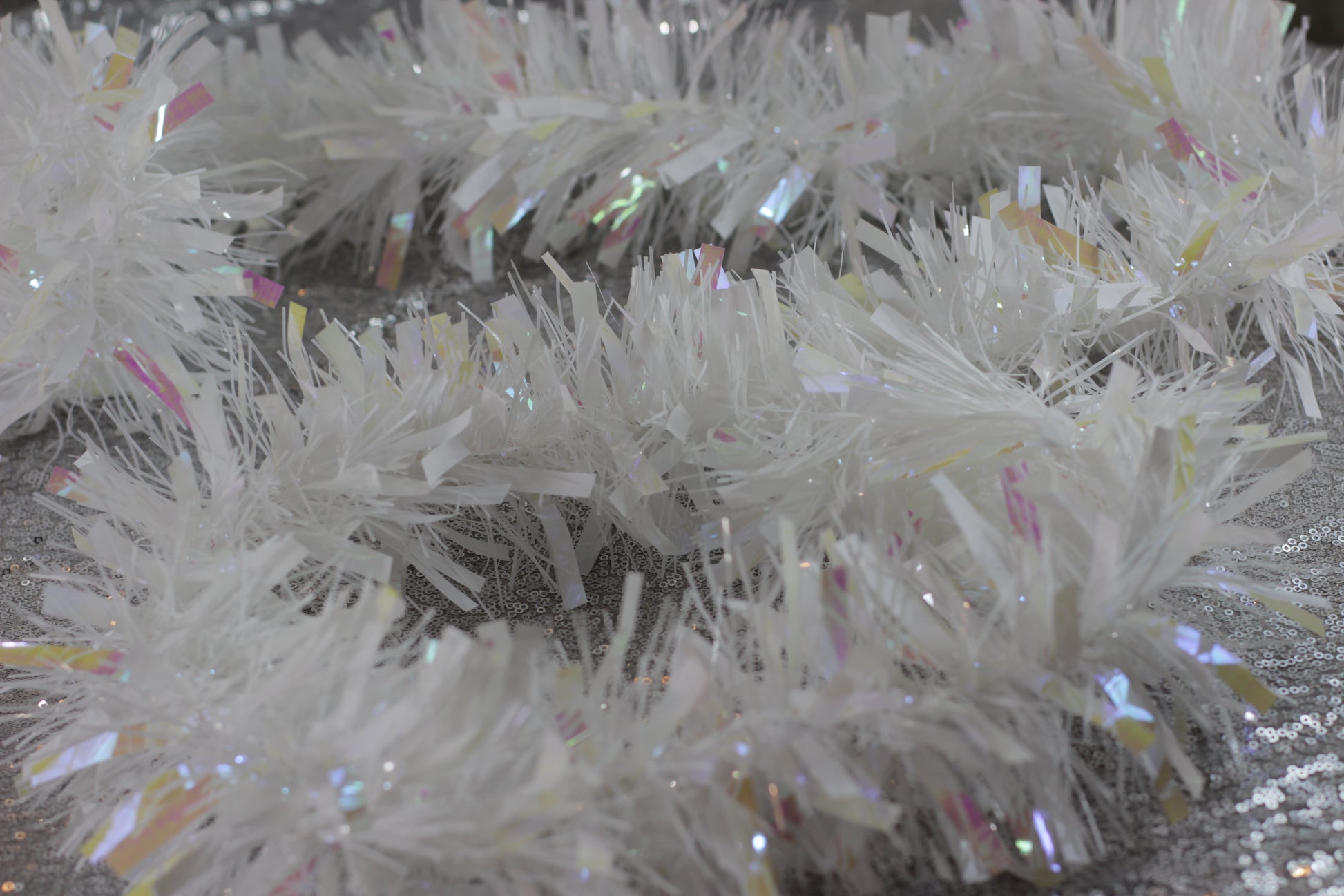 Bring brightness and style to your festive season with this luxurious iridescent white tinsel. The perfect way to add sparkle and sophistication to your celebrations.