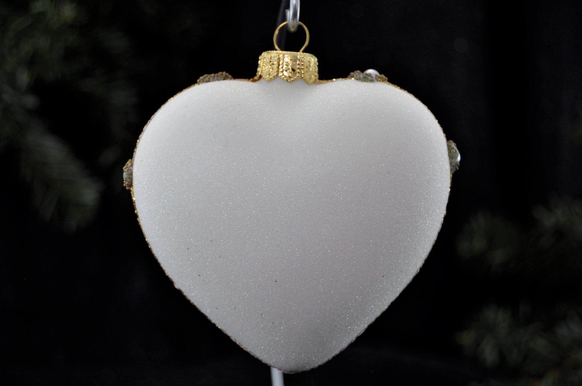 White Matte and Gold Luxury Heart Christmas Bauble with Swarovski Crystals